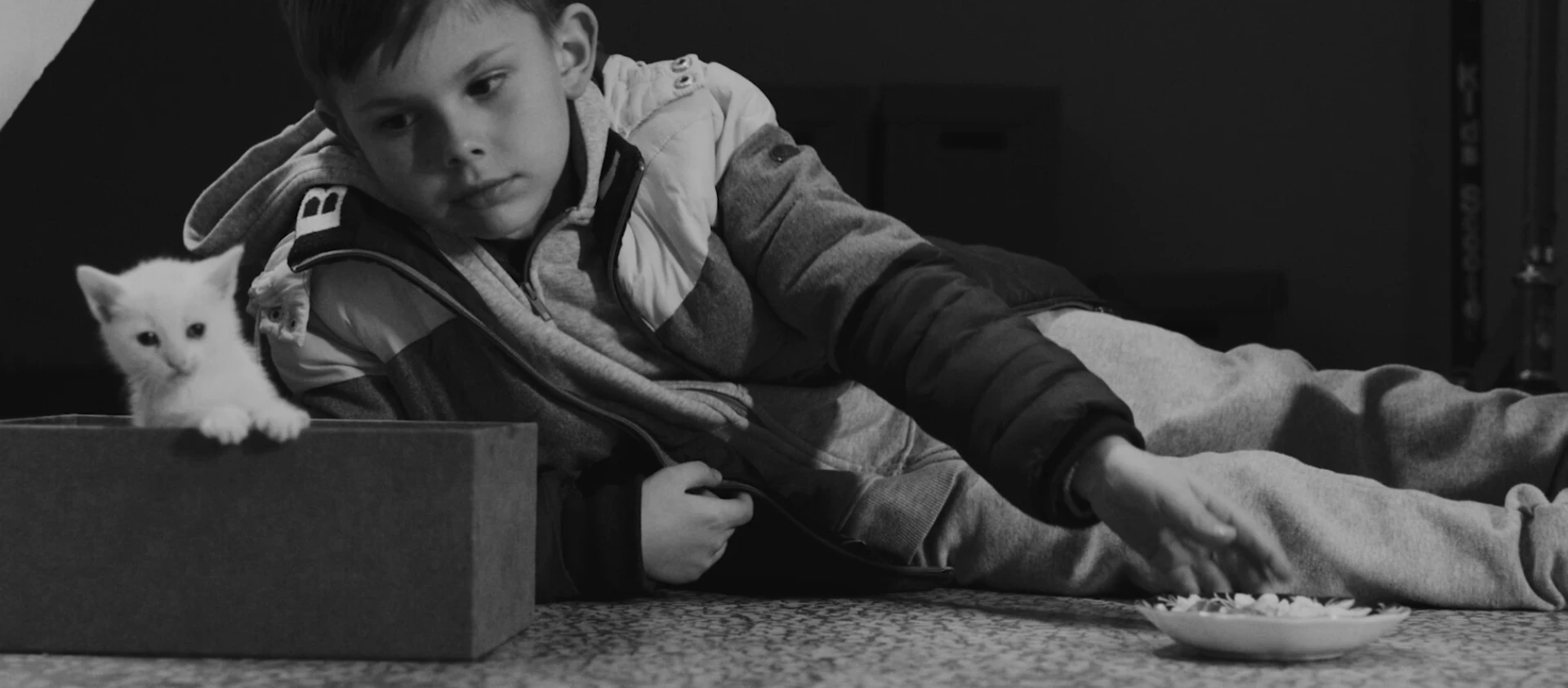 Danilo Stanimirović: Well, I love working with kids. I never really considered it difficult. I mean, of course, you need to do a very thorough casting process to find the right child, and once you do, it’s actually quite easy. I just treated them as adults, not in a way that talks down to them or tries to simplify things. We talked normally, like grown-ups. And they just do what you tell them. They never lie, they’re always present. Sure, they can’t work 12-hour days, and they get tired, but so do we. We just force ourselves through it, they don’t, which is actually very smart. So yes, it was wonderful working with this boy. And as for the kitten, yeah, that was harder. But she was actually a professional kitten, and she was very good too.