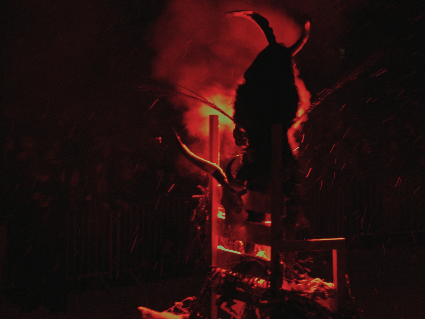 Emma Holzapfel: We had several viewing sessions together, plus a lot of interview material. Amina also helped me with the language my Austrian German isn’t perfect. After that, I locked myself in for a few hours at a time, trying to find the story in all this material. What really helped was leaning into contrasts: the idyllic little village—reinforced by the sound design and music, set against this intense, almost demonic ritual that happens every year. That contrast became the way to tell the village’s story.