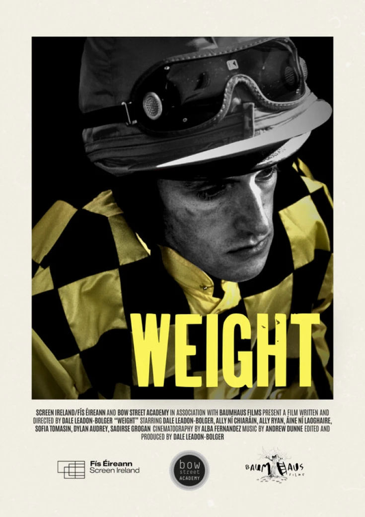 Biography: Dale Leadon-Bolger is an award-winning filmmaker and screenwriter from Ireland. He was awarded funding from Screen Ireland for his short film Weight, a film that he wrote, directed and produced, which had its world premiere at the Academy Award qualifying Galway Film Fleadh in 2024. Dale was commissioned by Virgin Media Television and Screen Ireland to produce and direct the documentary When Horses Run, which looked at the mental health of Irish jockeys. Having broadcast, it subsequently played globally at festivals and was nominated for the Headline Mental Health Media Awards and won the Irish Consulate Award at the Chicago Irish Film Festival.