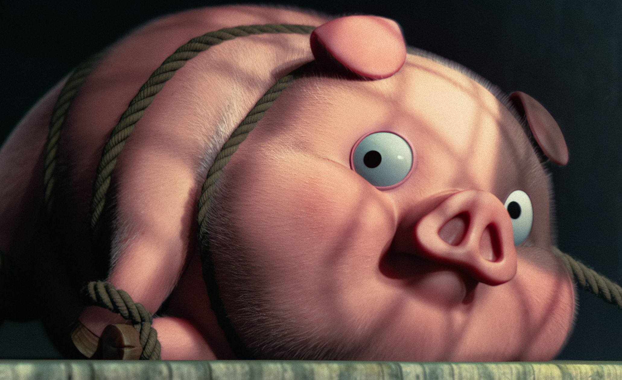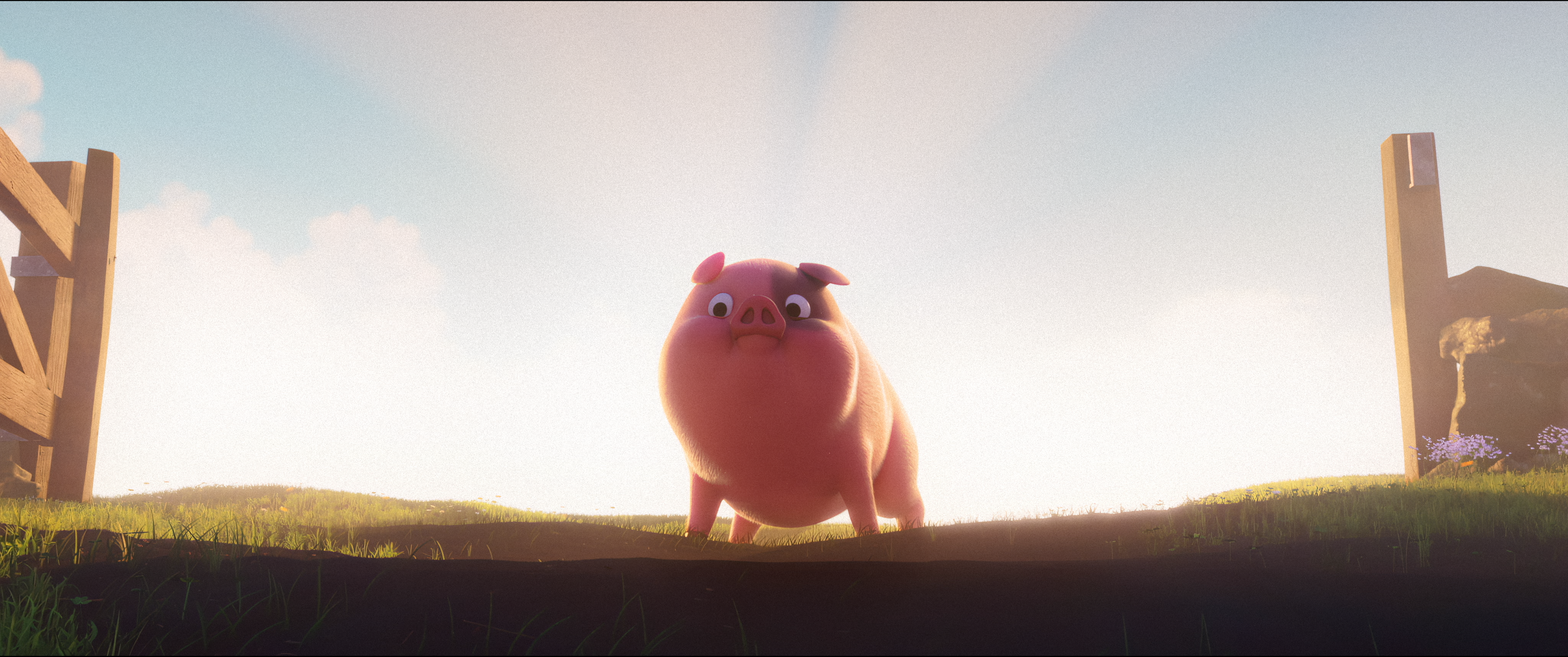 Avril Zundel: It was really hard to do. Our aim was to create a look for the film that was somewhat realistic but also cartoony, so people could empathise with it. That’s also why we made the pig round and very cute. For the render, we leaned more towards realism, which is why we added the hair on the pig. It made him even cuter.