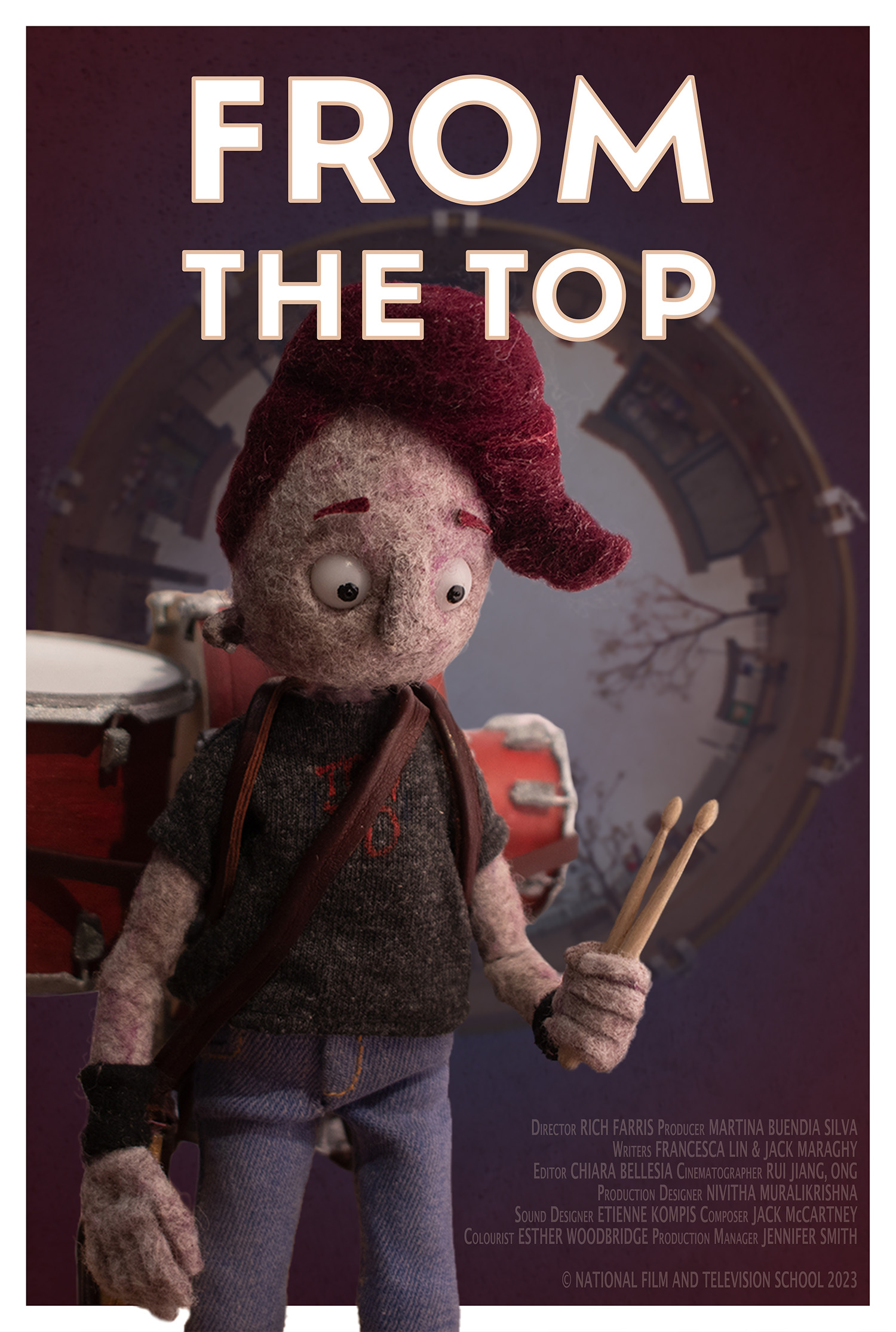 Rich Farris: That was a thing that came up again and again. From the top is made at the National Film and Television School and we have a lot of tutorials. We worked with a big team: writers, producers and all of the head departments. And these shaking elements keep coming back again and again. For me it is kind of how enjoying that creation of fear, and the anxiety coming from “Oh no, I should not be enjoying this, I am giving this up”. So, it’s kind of the world shaking, the world being the drum, trying to pull it back in, but resisting it.