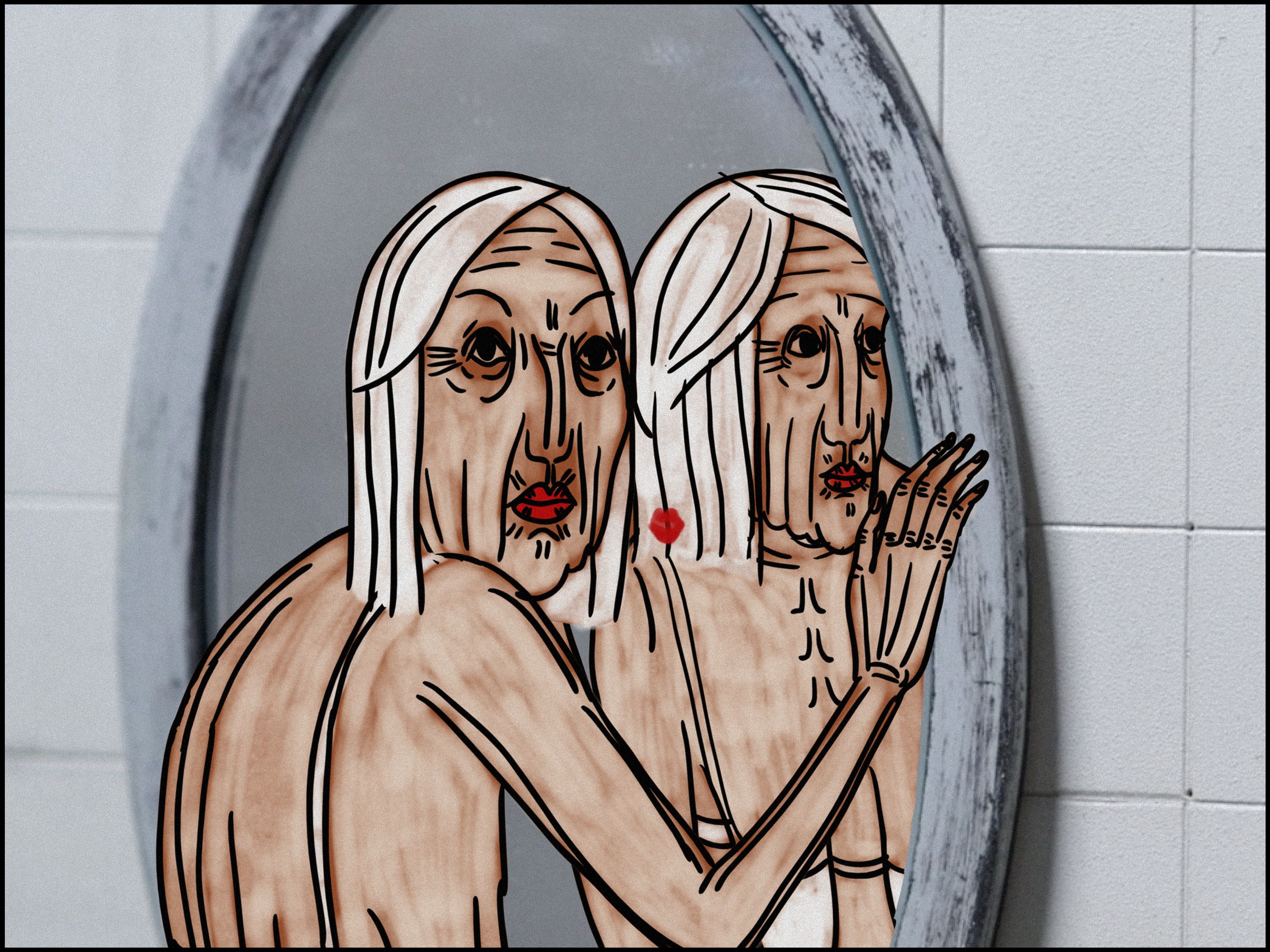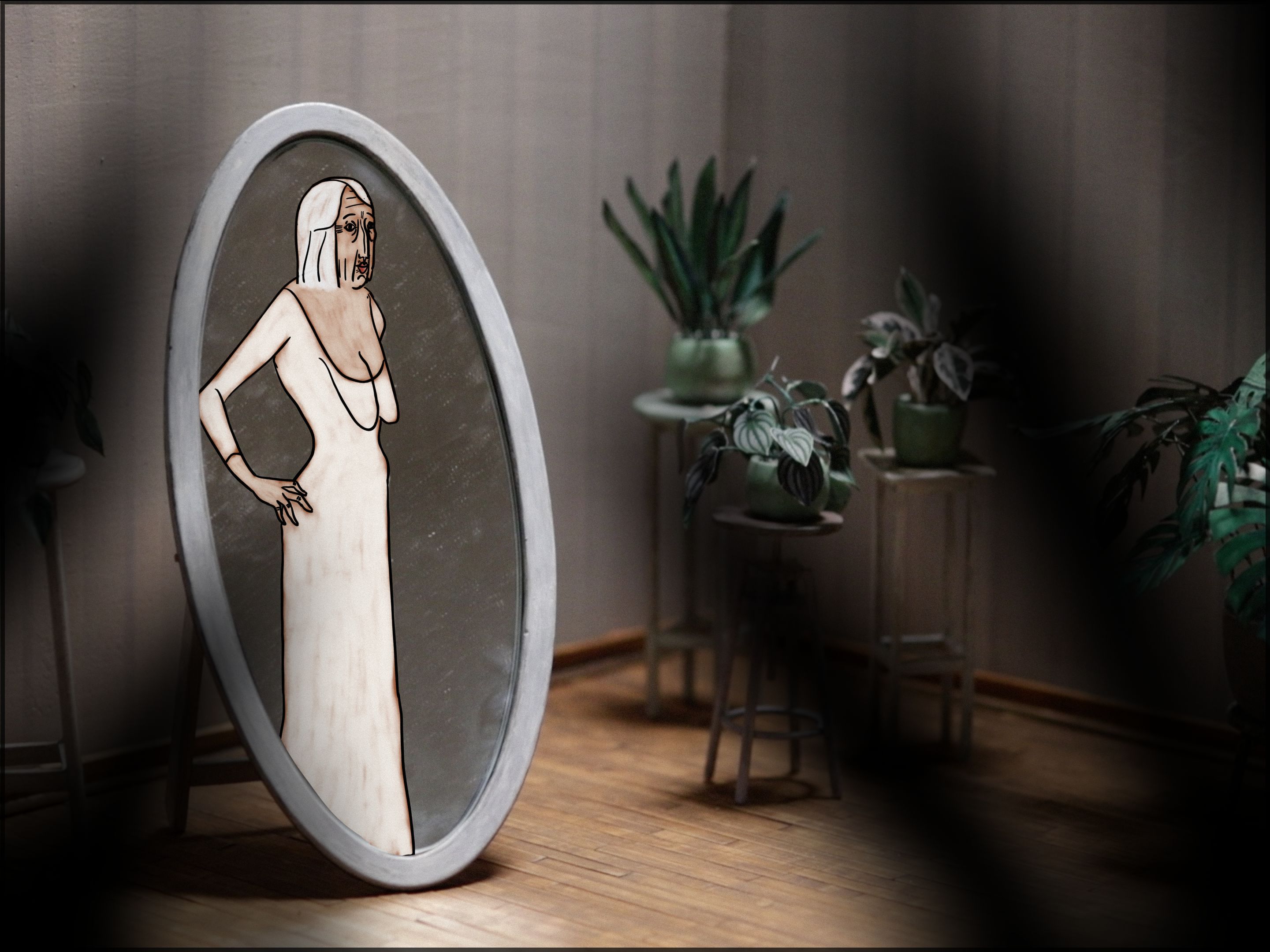 I wanted to show this concept that you reach life but at the end of it, when you get in old, lots of people are alone and need a human touch and they're dreaming about better days let's say when they were young, old people also have these needs for love they're missing everything what they got before.